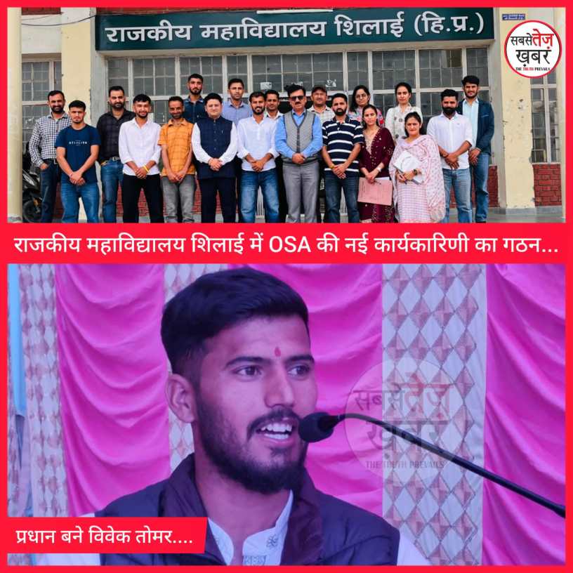 राजकीय महाविद्यालय शिलाई में आज Old Students Association (OSA) का जनरल हाउस बैठक सफलतापूर्वक सम्पन्न हुई। कार्यक्रम की अध्यक्षता महाविद्यालय के प्राचार्य डॉ. जे.आर. कश्यप ने की। इस अवसर पर कॉलेज के लगभग 40 पूर्व छात्र-छात्राओं ने भाग लिया और OSA के भविष्य की योजनाओं पर विचार-विमर्श किया। कार्यक्रम की शुरुआत प्रो. रीना शर्मा के स्वागत भाषण से हुई, जिसमें उन्होंने OSA की गतिविधियों और उद्देश्यों पर प्रकाश डाला। बैठक का मुख्य आकर्षण OSA की नई कार्यकारिणी का सर्वसम्मति से गठन रहा। नवगठित कार्यकारिणी में प्रधान पद की जिमेदारी विवेक तोमर को तो उप-प्रधान: मनोज शर्मा,सचिव: प्रो. रामलाल ठाकुर,सह-सचिव: अमित,कोषाध्यक्ष: कपिल शर्मा,लेखा परीक्षक: राजेन्द्र सिंह,मीडिया प्रभारी: प्रो. रीना शर्मा को मिली है। इसके अतिरिक्त, सलाहकार मंडल में राहुल चौहान, किशन तोमर, संदीप शर्मा और अमित तोमर को शामिल किया गया। प्राचार्य डॉ. जे.आर. कश्यप ने नवनिर्वाचित पदाधिकारियों को शुभकामनाएँ दीं और भविष्य में रचनात्मक कार्यक्रमों के आयोजन का आह्वान किया। OSA संयोजक प्रो. विद्या वर्मा ने सभी का आभार व्यक्त किया और कार्यक्रम की सफलता पर प्रसन्नता जताई।