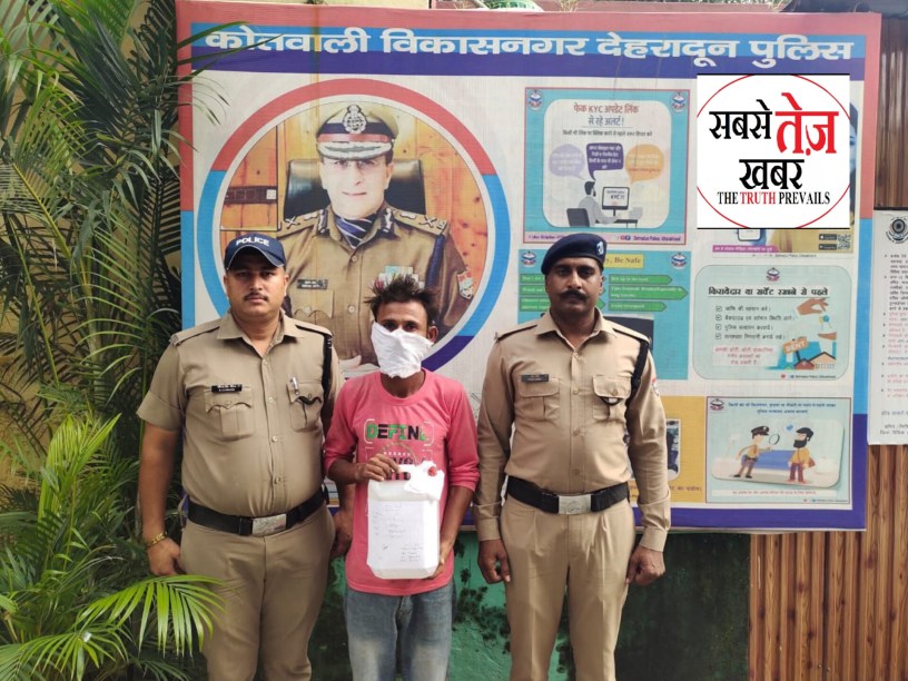Large action of Vikasnagar Police: A person arrested with 5 liters of illegal raw liquor from Mehuwala