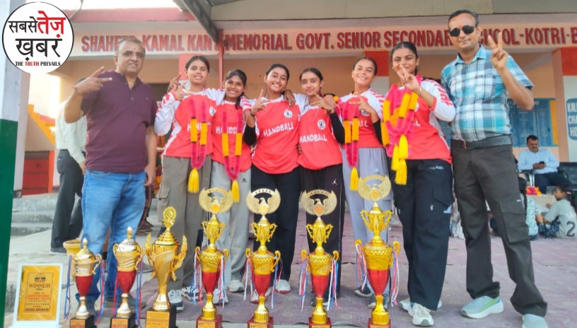 The Panchayat head of the village panchayat Kotdi Vyas of the Paonta Sahib development block, the head of the school management committee, and the parents welcomed the silver medal and trophy winning team Sirmour in the handball competition with garlands and drums upon their arrival at the village panchayat. On this occasion, all the players from Kotdi Vyas were greeted with garlands, tilak, sweets, and slogans to encourage the winning team. Under the leadership of Panchayat head Suresh Kumar and SMC head Mansingh, the runner-up handball team was given a grand welcome upon their arrival at the village panchayat Kotdi Vyas. All the parents, players, students, and SMC members expressed their joy. Team Captain Sneha and Vice Captain Mehak reported that the final match was played between the national players and the Sujjit team from Bilaspur. The Sirmour team gave a good fight and won the runner-up title.