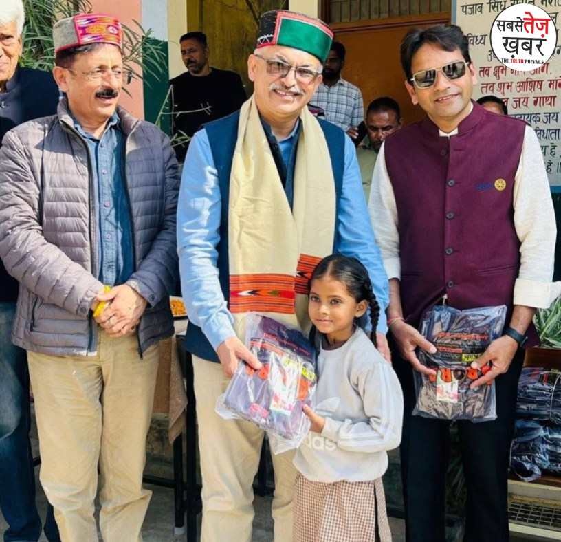 The Rotary Club of Nahan organized a program at Primary School Moginand-2 in Nahan, Sirmaur district, on Friday. MLA Ajay Solanki attended as the chief guest. Rotary Club President Manish Jain explained that the school management had informed him that most of the students come from families with limited resources. The students’ parents are laborers employed in nearby industrial units, and these children are in dire need of sweaters.
