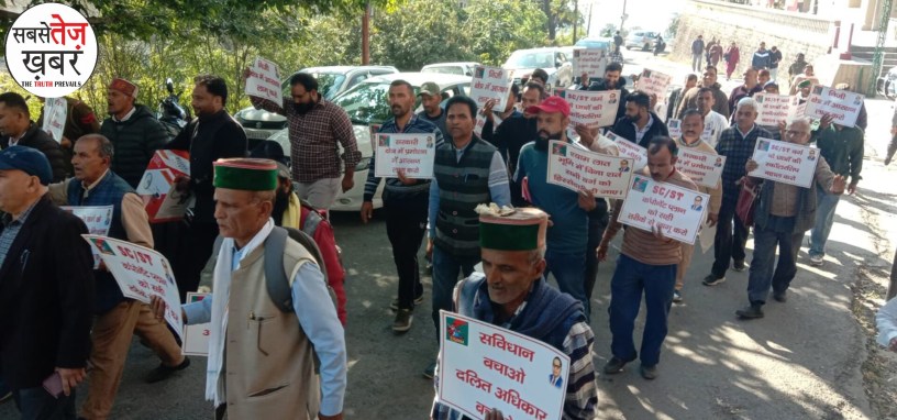 The Dalit Shoshan Mukti Manch held a protest rally in Nahan on Monday against Dalit oppression, discrimination, and attacks on their rights in Himachal Pradesh. Representatives from more than eight Dalit organizations participated in the protest rally, raising their voices against the increasing atrocities against Dalits. The protest rally began at the Hindu Ashram, Nahan, and traveled through various routes to the Deputy Commissioner’s office. Prior to this, a joint convention of Dalit organizations was held at the Hindu Ashram, Nahan. The convention was inaugurated by convener Ashish Kumar, while the forum was moderated by Satpal Mann. Ashish Kumar stated that atrocities against Dalits have recently increased in the state. The suspicious death of a Dalit child, Sikandar, in Rohru, and the attack and death of a Dalit woman in Sainj, Kullu, have sparked outrage across the state.