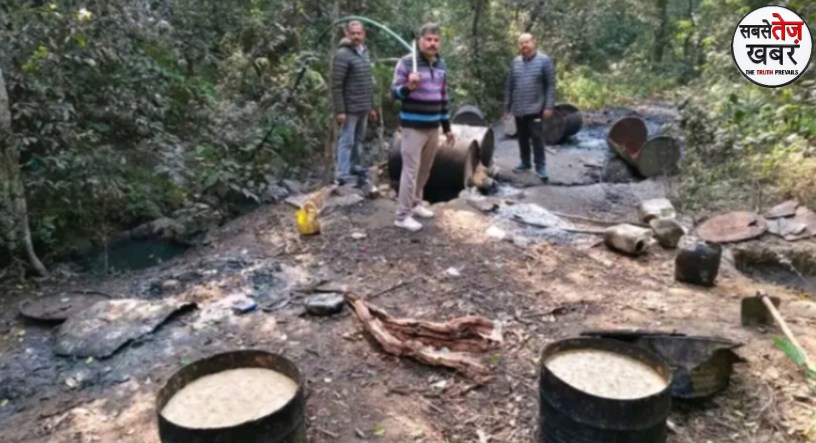 Illegal liquor manufacturing operation busted in the forests of Khara in Paonta Sahib; 2600 liters of illicit liquor and 4 stills destroyed.