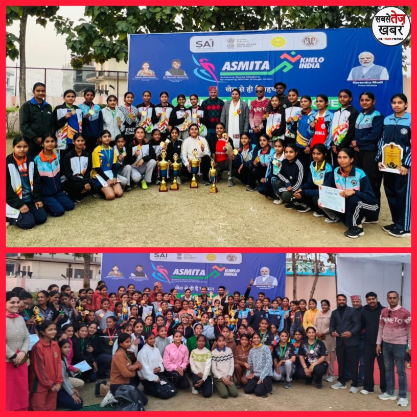 The Khelo India Asmita Rugby League was held at The Scholar Home in Paonta Sahib. At the closing ceremony of the competition, the chief guest, Mrs. Naseema Begum, Director of Himachal Pradesh Civil Supplies, honored the winning players with trophies, medals, and merit certificates. The competition featured matches in the Under-15, Under-18, and Senior Girls categories. The Director advised the players that participating in sports would keep them away from drugs and help them maintain their fitness. She also emphasized that girls are excelling in every field today and encouraged them to make sports a part of their daily routine. In the Under-15 (Sub-Junior) category, K.B. Club Kotdi Vyas defeated Ved Vyas Club 15-5 to claim the winner’s title. In the Under-18 (Junior) category, K.B. Club Kotdi Vyas was the winner and Ved Vyas Club was the runner-up. In the Senior category, U.K. Club was the winner, Nectar Academy Paonta was the runner-up, and K.B. Club Kotdi Vyas secured the third position.