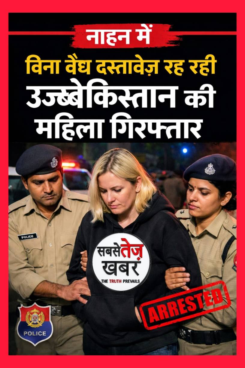 जिला सिरमौर पुलिस ने बिना वैध दस्तावेजों के भारत में रह रही उज़्बेकिस्तान की एक महिला को गिरफ्तार किया है। यह कार्रवाई पुलिस थाना सदर नाहन की टीम द्वारा की गई है। यह मामला वीरवार की देर रात उस समय सामने आया जब नाहन पुलिस को 112 हेल्पलाइन के माध्यम से एक संदिग्ध वाहन के बारे में सूचना मिली। सूचना के आधार पर पुलिस दल ने शक्तिनगर से आगे कैंची मोड़ और जोगनवाली लिंक रोड पर तलाशी अभियान चलाया। वहां पुलिस को एक उत्तर प्रदेश नंबर की गाड़ी (UP16EF-7194) सड़क किनारे नाली में फंसी हुई मिली। जब पुलिस ने गाड़ी की जांच की, तो उसमें एक पुरुष और एक विदेशी महिला सवार थे। वाहन की चालक सीट पर बैठे व्यक्ति की पहचान सैफ क्वेजिलबाश के रूप में हुई, जो ग्रेटर नोएडा (उत्तर प्रदेश) का निवासी है। उसके साथ बैठी महिला ने अपनी पहचान उज़्बेकिस्तान की नागरिक के रूप में बताई।
