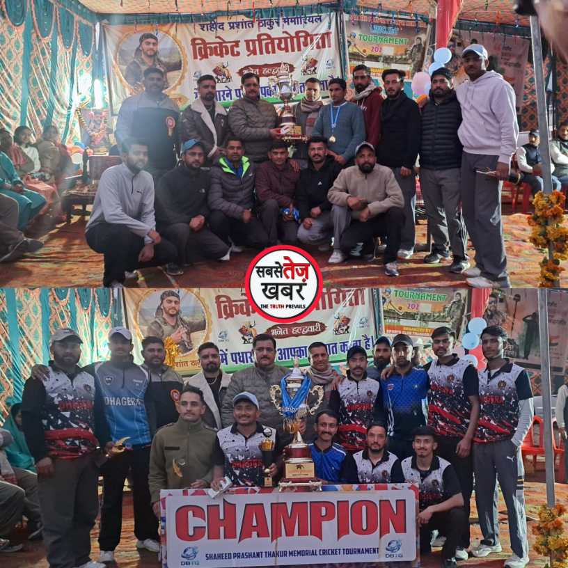 At the closing ceremony, social worker and youth leader Manish Tomar and DSR Group owner and Doon Press Club president Mukesh Ramol were present as chief guests. They paid tribute to the parents of martyr Prashant Thakur, saying that their son had become immortal by making the ultimate sacrifice for the country. They also encouraged the youth to participate in sports and stay away from drugs. The final match of the tournament was played between the Dhagera and Panjhal teams, with the Dhagera team winning by 23 runs and claiming the championship trophy. The winning team received a cash prize of ₹1,31,000, while the runner-up Panjhal team was awarded ₹60,000 in cash and a trophy. Individual awards were given to Bhaskar (Emerging Player), Neeraj Thakur (Best Bowler), Pankaj (Best Batsman), Sonu (Best Wicketkeeper), Vinod (Best Fielder), and Shubham (Man of the Series). The organizing committee members Vipin Sharma, Anshul Bhandari, Vishal Thakur, Aresh Thakur, Nihal Thakur, Johnny Sharma, and Parul Thakur expressed their gratitude to all the guests, players, and spectators. On this occasion, the chief guests were honored with shawls, caps, and mementos.