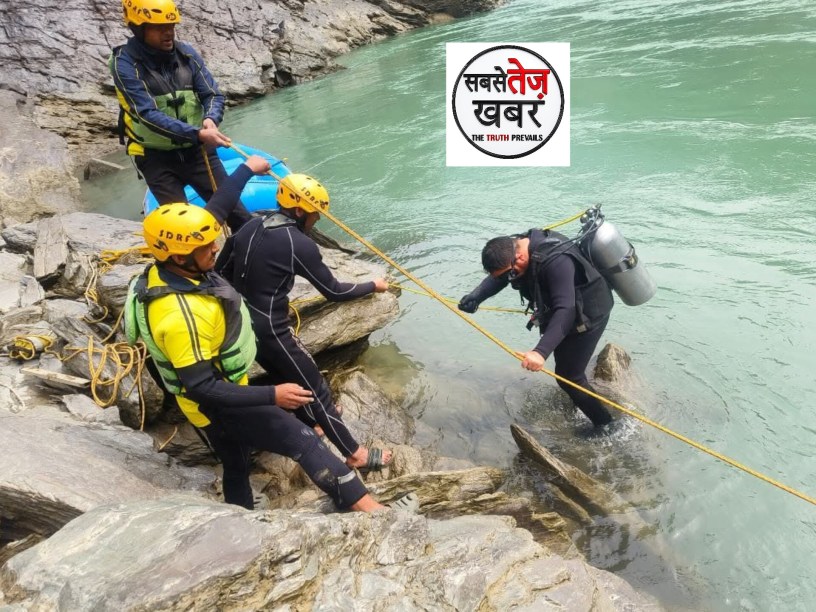 Upon receiving information from the District Control Room (DCR) Tehri Garhwal, the SDRF team immediately sprang into action. A rescue team led by Sub-Inspector (SI) Mr. Sawar Singh rushed to the spot. On reaching the scene, the team found that the vehicle had completely submerged in the river and was no longer visible on the surface.