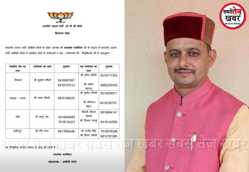 बताया जा रहा है कि पांवटा साहिब से जुड़े पवन चौधरी लंबे समय से पार्टी गतिविधियों में सक्रिय रहे हैं और जमीनी स्तर पर काम करते रहे हैं। उनकी नियुक्ति से कार्यकर्ताओं में उत्साह देखा जा रहा है। यह सूची हिमाचल प्रदेश के विभिन्न संसदीय क्षेत्रों के संयोजकों और सह-संयोजकों की नियुक्तियों से संबंधित है, जिसे पार्टी संगठनात्मक विस्तार के तहत जारी किया गया है। अपनी नियुक्ति पर पवन चौधरी ने प्रदेश भाजपा आलाकमान भाजपा प्रदेश अध्यक्ष डॉक्टर राजीव बिंदल, पूर्व मुख्यमंत्री जयराम ठाकुर, ओबीसी मोर्चा प्रदेश अध्यक्ष रामलोक धनोटिया सहित पूर्व मंत्री सुखराम चौधरी, प्रदेश प्रवक्ता बलदेव तोमर और जिलाध्यक्ष भाजपा धीरज गुप्ता आदि का आभार प्रकट किया है।