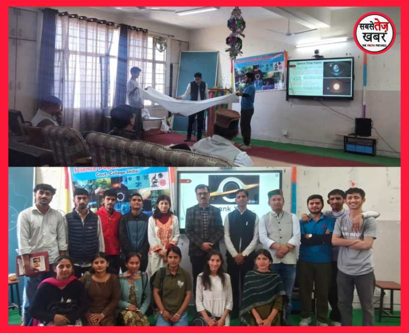 राजकीय महाविद्यालय शिलाई के विज्ञान प्रसार क्लब द्वारा महाविद्यालय के प्राचार्य डॉ. जे. आर. कश्यप के मार्गदर्शन में “स्पेस-टाइम और ब्लैक होल्स: ब्रह्मांड की संरचना को समझना” विषय पर एक विशेष व्याख्यान का आयोजन किया गया। इस व्याख्यान को भौतिक विज्ञान विभाग के सहायक प्राध्यापक डॉ. संसार चंद ने प्रस्तुत किया। कार्यक्रम का शुभारंभ प्रो. रंजना चौहान के स्वागत भाषण से हुआ। अपने व्याख्यान में डॉ. संसार चंद ने स्पेस-टाइम और ब्लैक होल्स से जुड़ी विभिन्न वैज्ञानिक अवधारणाओं को विस्तार से समझाया। उन्होंने गुरुत्वाकर्षण को समझने में न्यूटन और आइंस्टीन के योगदान पर प्रकाश डालते हुए विशिष्ट सापेक्षता सिद्धांत तथा सामान्य सापेक्षता सिद्धांत की भी जानकारी दी। इसके अलावा उन्होंने अंतरिक्ष विज्ञान, ब्लैक होल्स और ब्रह्मांड के रहस्यों से जुड़ी कई रोचक जानकारियां साझा कीं। व्याख्यान अत्यंत संवादात्मक रहा, जिसमें महाविद्यालय के छात्र-छात्राओं और स्टाफ ने उत्साहपूर्वक भाग लिया और विषय से संबंधित प्रश्न भी पूछे।