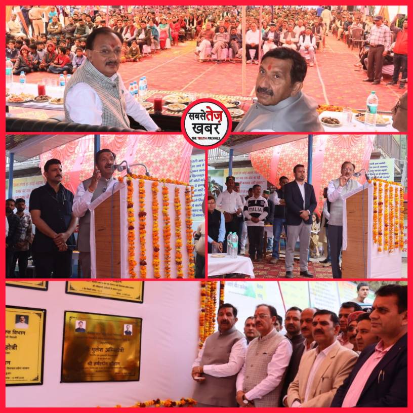 उपमुख्यमंत्री मुकेश अग्निहोत्री ने जिला सिरमौर के एक दिवसीय प्रवास कार्यक्रम के दौरान आज शिलाई विधान सभा क्षेत्र के टिंबी में आयोजित कार्यक्रम में बतौर मुख्यातिथि शिरकत की। इस दौरान उद्योग, संसदीय कार्य एवं श्रम रोजगार मंत्री हर्षवर्धन चौहान भी उनके साथ शामिल रहे। उपमुख्यमंत्री ने उद्योग मंत्री की उपस्थिति में 90 लाख से निर्मित कालची चियाली उठाऊ पेयजल योजना व राoवoमाoपाo टिम्बी में पुस्तकालय का लोकार्पण किया। इसके अतिरिक्त उन्होंने 5 करोड़ 17 लाख की उठाऊ पेयजल योजना ठोन्था जाखल के विस्तार की आधारशिला व 1 करोड़ 11 लाख की लागत से टिंबी में जलशक्ति विभाग के निरीक्षण कुटीर का शिलान्यास किया। उपमुख्यमंत्री मुकेश अग्निहोत्री ने शिलाई विधान सभा का नेतृत्व कर रहे उद्योग मंत्री हर्षवर्धन चौहान द्वारा उनके विधान सभा क्षेत्र में किए जा रहे कार्यों एवं उनके सशक्त नेतृत्व की प्रशंसा की। उन्होंने कहा कि शिलाई विधान सभा क्षेत्र की जनता ने हर्षवर्धन चौहान को छ: बार विधायक चुनकर विधानसभा में भेजा है क्षेत्रवासियों का विश्वास उनके साथ है। उद्योग मंत्री की कर्तव्य निष्ठा से क्षेत्र में अभूतपूर्ण विकास हो रहा है। उन्होंने कहा कि प्रदेश सरकार द्वारा राज्य के विकास के लिए निरंतर प्रयास किए जा रहे है। उन्होंने डॉक्टर यशवंत सिंह परमार और वीरभद्र सिंह द्वारा राज्य के विकास के लिए किए गए कार्यों को भी याद किया। उन्होंने कहा कि जिला सिरमौर में जल आपूर्ति के लिए करोड़ों की योजनाएं चलाई जा रही है।