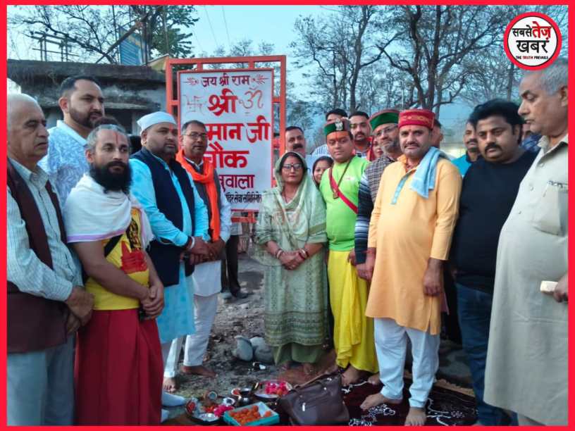 Gorakhuwala Chowk in the Paonta Sahib area has been renamed “Shri Hanuman Chowk.” This decision was unanimously taken by the Prachin Shri Hanuman Mandir Seva Samiti. The resolution was passed in the presence of the committee’s president, Ankush Chaudhary, and secretary, Rajesh Kumar. During a ceremony to mark the renaming, outgoing Panchayat Pradhan Surekha Chaudhary formally inaugurated the Chowk. Renowned storyteller Acharya Shri Pradeep Saraswat, along with dignitaries and a large number of locals, were present. An atmosphere of excitement and joy pervaded the area during the event.