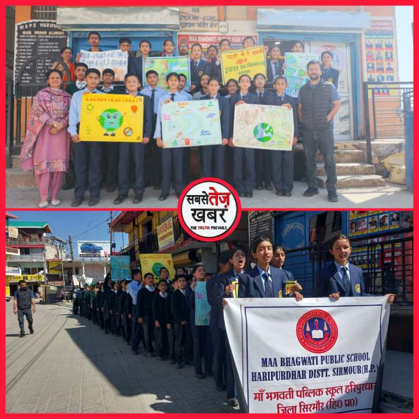 Various awareness programs were enthusiastically organized yesterday at the region’s prestigious educational institution, Maa Bhagwati Public School, Haripurdhar, to mark World Earth Day. On this occasion, the school students not only showcased their art and speech, but also organized a rally to raise awareness among the local population about environmental protection. The highlight of the program was the public awareness rally organized by the school students. The students took out a rally in Haripurdhar market, spreading the message of environmental protection. The entire market reverberated with the children’s enthusiastic slogans. Holding placards and banners, the children appealed to the local people to keep the Earth safe and green for future generations. In a speech competition held on the school campus, the children shared their responsibilities towards the Earth with their powerful speeches. Meanwhile, students in grades 9 and 10 displayed their creativity in a poster-making competition, creating beautiful and meaningful posters.
