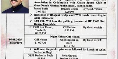 Sirmour: नाहन में मंत्री विक्रमादित्य सिंह करेंगे जिला स्तरीय स्वतंत्रता दिवस की अध्यक्षता, पांवटा साहिब के आंजभोज क्षेत्र का भी करेगे दौरा