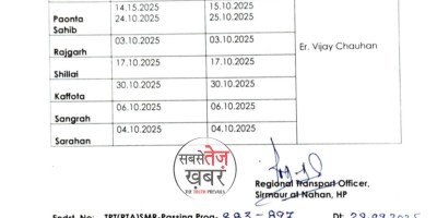 Sirmour: नाहन वाया जमटा-रेणुका जी मार्ग आज दोपहर 3 बजे तक सभी तरह के यातायात के लिए रहेगा बंद
