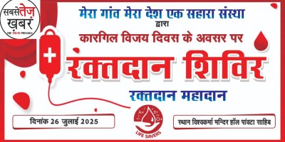Paonta Sahib: कारगिल के वीरों को श्रद्धांजलि, पांवटा साहिब में लगेगा रक्तदान शिविर, मेरा गाँव मेरा देश एक सहारा संस्था की अनूठी पहल